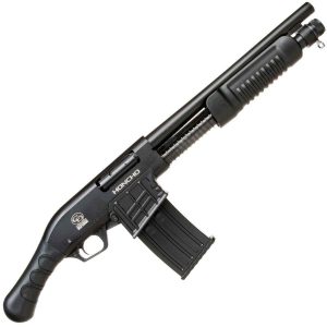The Charles Daly Honcho Tactical is a 12-gauge, mag-fed, spring-assisted pump-action shotgun featuring a 14-inch barrel, durable black anodized finish, and ergonomic bird’s head grip for reliable home defense performance.