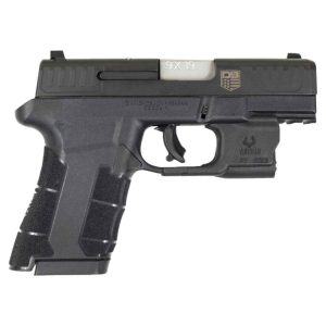 The Diamondback DBAM29 is a subcompact 9mm Luger pistol featuring a 3.5in stainless steel barrel, black nitride slide, polymer frame, 3-dot sights, and comes with a Viridian laser and holster for enhanced concealed carry performance.