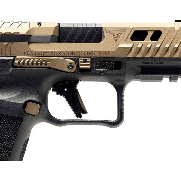 Canik TTI Combat 9mm Luger 4.6in TTI Bronze Pistol – 18+1 Rounds – Taran Tactical Innovations and CANiK are proud to partner to bring you the CANiK TTI Combat. Built on a completely new polymer frame designed by Taran Butler, the TTI Combat brings a one-of-a-kind performance package to the CANiK lineup. This sleek design is built by the best, for the best, and includes all the features a world champion like Taran Butler needs for success. Both internally and externally, the TTI Combat delivers. Immediately notable are the following features: The aggressive grip texturing, integrated flared magwell, removable aluminum competition magwell, a ported and spiral-fluted barrel, the first CANiK compensator, a diamond cut and flat-faced 90 degree break trigger, fully adjustable sights, two 18 round magazines with one flush fit TTI base pad and one +3 TTI base pad, a serrated and ambidextrous slide release, three back strap size options, a low profile optics cut for the MECANIK line of optics as well as the Trijicon SRO… and many other optic options. This unique handgun also comes with a custom holster, hard travel case, cleaning kit, tool kit, custom punch, magazine speed loader, trigger lock and three optic plate interfaces. To finish off this collectable package CANiK has included a handsome collaboration coin to commemorate their lasting partnership, a partnership that has created a truly Superior Firearm.