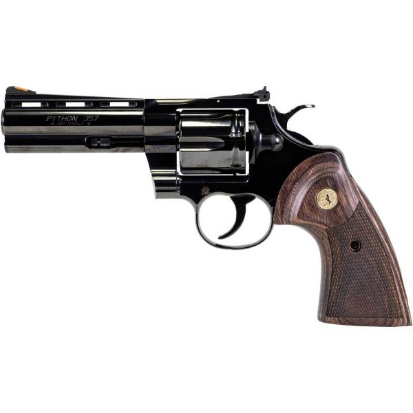 Colt Python 357 Magnum 4.25in Blued Revolver – 6 Rounds – The Python features a redesigned rear sight with 30% more steel beneath the adjustable rear target sight, giving you a stronger revolver and more robust shooting experience.