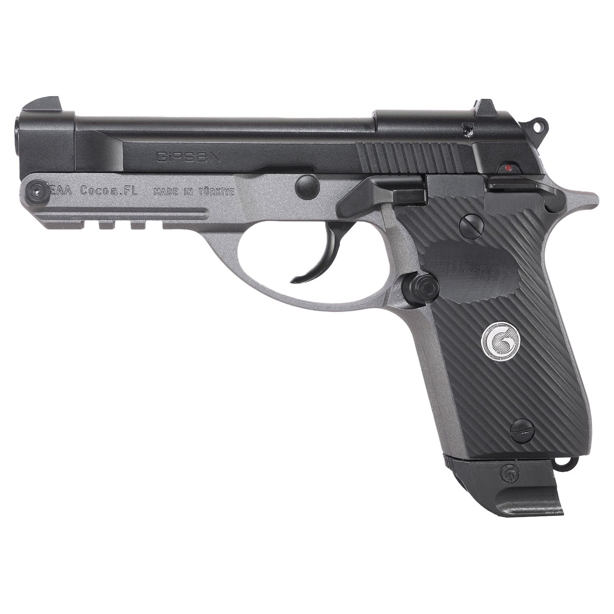 EAA MC 14T 380 Auto (ACP) 4in Black Stainless Pistol – 13+1 Rounds – The MC 14T Solution by Girsan focuses on ease of use and high capacity in a compact design. Due to the Tip-Up design (no slide racking required) loading and firing the MC 14T is simple and quick, using very minimal moving parts to go from loading to firing. The tip-up barrel feature is primarily being marketed toward those who have difficulties operating the slide on traditional semi-auto handguns. To load a round into the chamber, all one has to do is press the lever on the right side of the frame down to release the barrel, pop a cartridge in and snap the barrel closed.