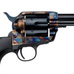 Pietta Great Western II The Hands of God 9mm Luger 5.5in Blued Revolver – 6 Rounds – Historical Inspiration, Modern Excellence: The Hand of God Revolver. It pays homage to its cinematic roots, bringing to life the iconic firearm featured in “3:10 to Yuma.” Pietta has meticulously crafted this revolver, blending historical inspiration with modern precision. The result, with the golden in-lay cross in the grip, is a firearm that stands as a testament to both heritage and cutting-edge engineering.