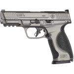 Smith & Wesson M&P40 M2.0 Metal OR 40 S&W 4.22in Tungsten Gray Cerakote Pistol – 15+1 Rounds – The performance that began with our polymer construction is now forging forward. The lightweight and rigid metal frame of the S&W M&P M2.0 Metal provides for higher performance. Features 18-degree grip angle for natural point of aim; textured polymer front strap; wide slide stop; reversible magazine release; slide cut for optics; M2.0 flat face trigger for consistent finger placement that allows for more accurate and repeatable shooting; Picatinny style rail; low barrel bore axis makes the M&P pistol comfortable to shoot, reducing muzzle rise and allowing for faster aim recovery; enhanced sear for lighter, crisper trigger let-off; M&P patented take-down lever and sear deactivation systems allow for disassembly without pulling the trigger. Includes four interchangeable palmswell grip inserts – S, M, ML, L and two magazines.