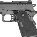 Springfield Armory 1911 DS Prodigy Compact 9mm Luger 4.25in Black Pistol – 15+1 Rounds – The Prodigy Compact from Springfield Armory takes the proven 1911 platform and enhances it with double-stack capacity and a carry-focused feature set. Reconfigured around a 15-round double-stack magazine, the Prodigy’s compact polymer grip module mounts to its lightweight aluminum frame to reduce weight, while a shortened beavertail and recontoured hammer further downsize the overall footprint. Optics ready with a tritium front sight and and Picatinny rail the Prodigy Compact combines the most beloved characteristics of the 1911 with modern capacity for EDC.