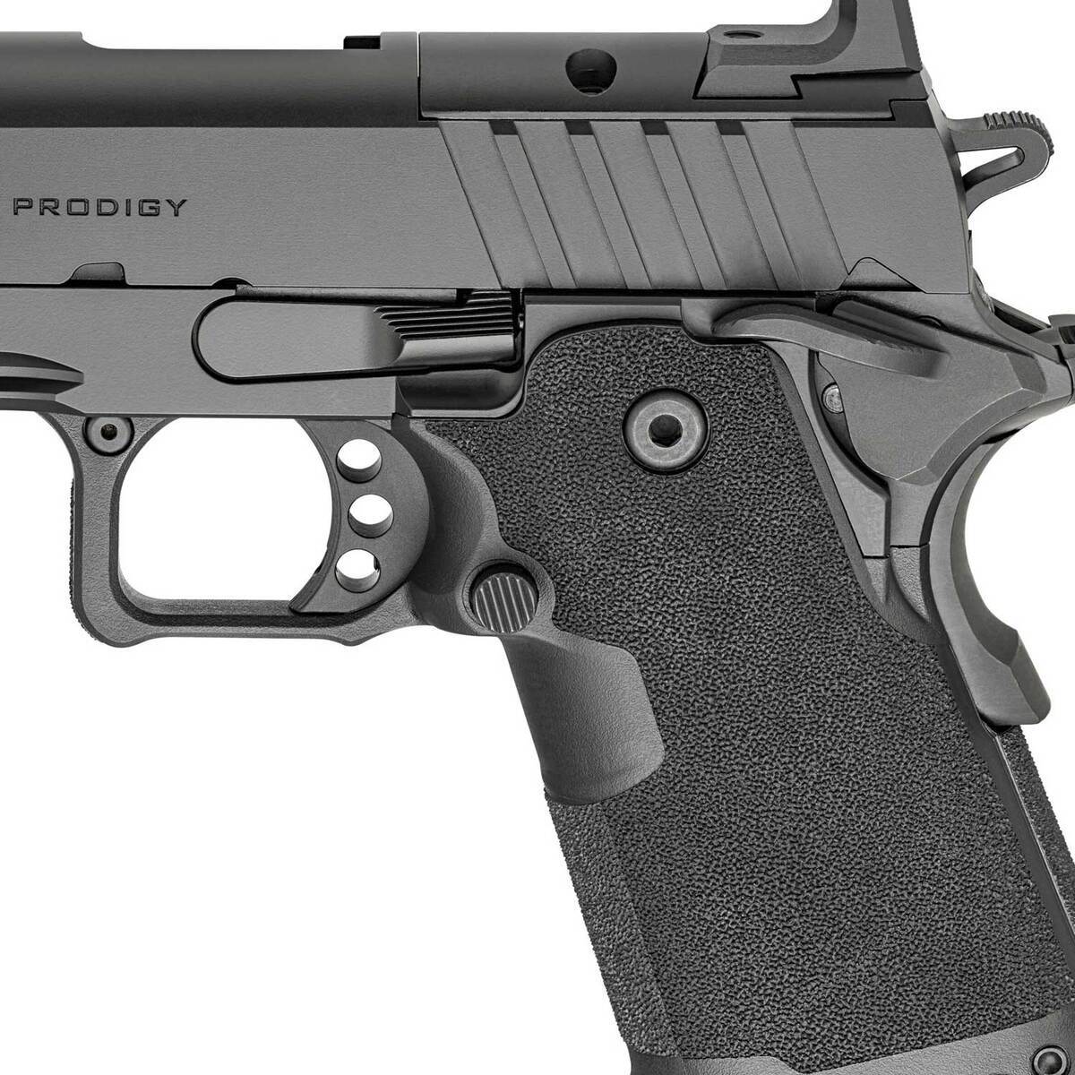 The Prodigy from Springfield Armory takes the proven 1911 platform and enhances it with double-stack capacity and a performance-driven feature set. Reconfigured around a double-stack magazine, the Prodigy’s polymer grip module mounts to its forged steel frame offering capacities of 15, 17 and 20+1. Optics ready with an ambidextrous safety and picatinny rail, the Prodigy combines the most beloved characteristics of the 1911 with modern capacity for unrivaled performance.